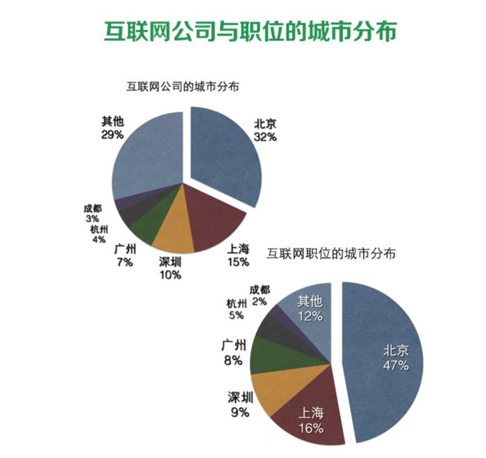 四、互聯(lián)網(wǎng)公司與職位的城市分布情況